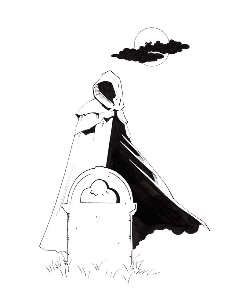 I was worried that, since his costume is mostly black, that Allan would think I was being lazy on his piece, so I did a li’l bit extra in the background to make it seem worthwhile ;)